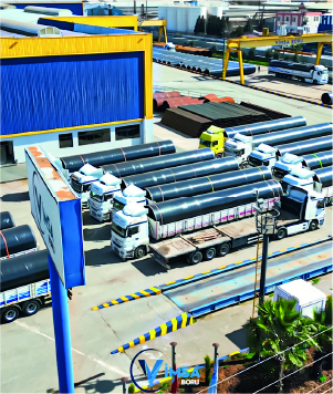 The pipe is heated up to 180-220°C by a gas oven or induction cabin, and the surface of the pipe is electrostatically coated with special epoxy guns between 100-200 microns. The adhesive layer is obtained by the extrusion method and bonded to the pipe surface via silicone rollers. The polyethylene obtained by the same extrusion method is wrapped similarly. The polyethylene-coated pipe is cooled to 50-70°C in the cooling tunnel.
